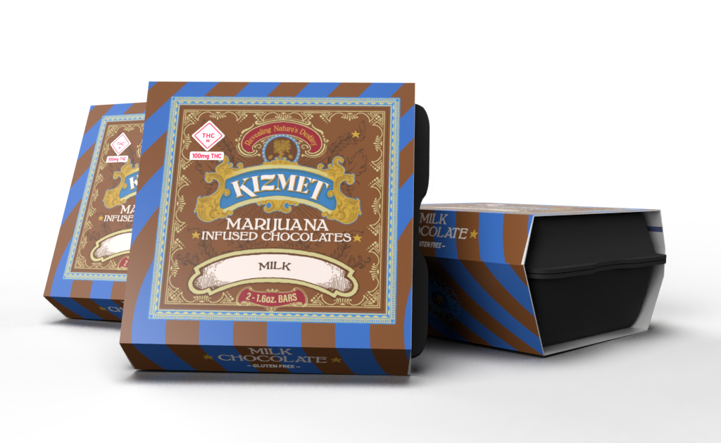 Ingredients: Sugar, cocoa butter, whole milk, chocolate liquor, soy lecithin, vanillin, luster dust, cannabis oil.