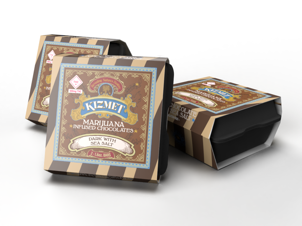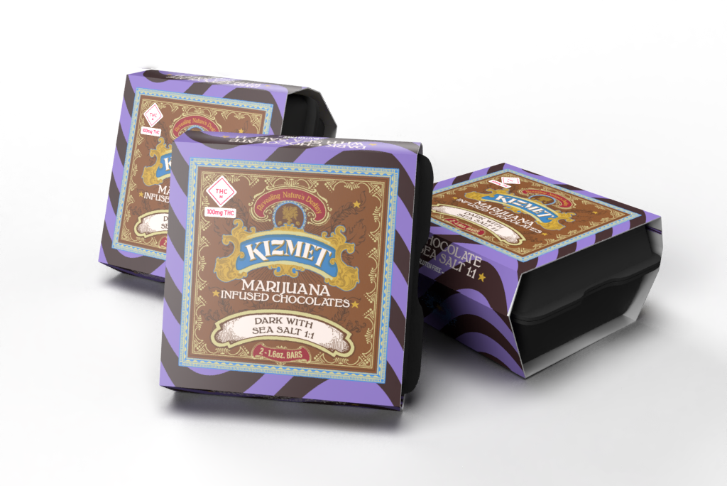 Ingredients: Sugar, cocoa butter, milk fat, chocolate liquor, soy lecithin, vanillin, luster dust, sea salt, cannabis oil.